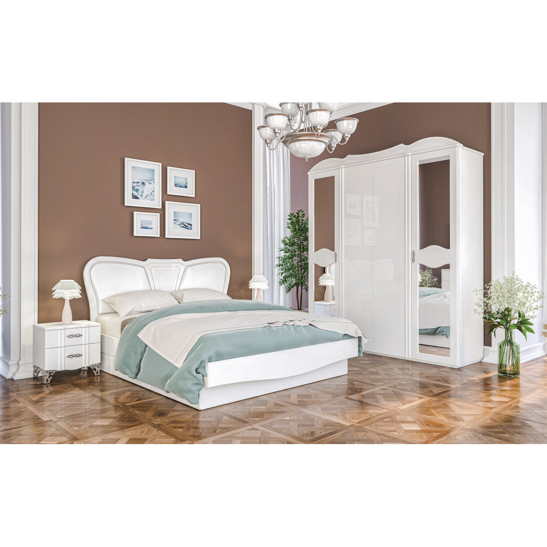 Четырехстворчатый шкаф для одежды и белья МН-025-24 в спальню серии София (Мебель-Неман) выполнен в светлом кремовом оттенке с благородным глянцем. Благодаря зеркальным створкам по всей высоте, большой гардероб с легкостью вписывается в общий интерьер, визуально делая пространство большим. Купить большой гардеробный шкаф в комнату – забыть о проблеме недостатка места для белья и вещей навсегда.