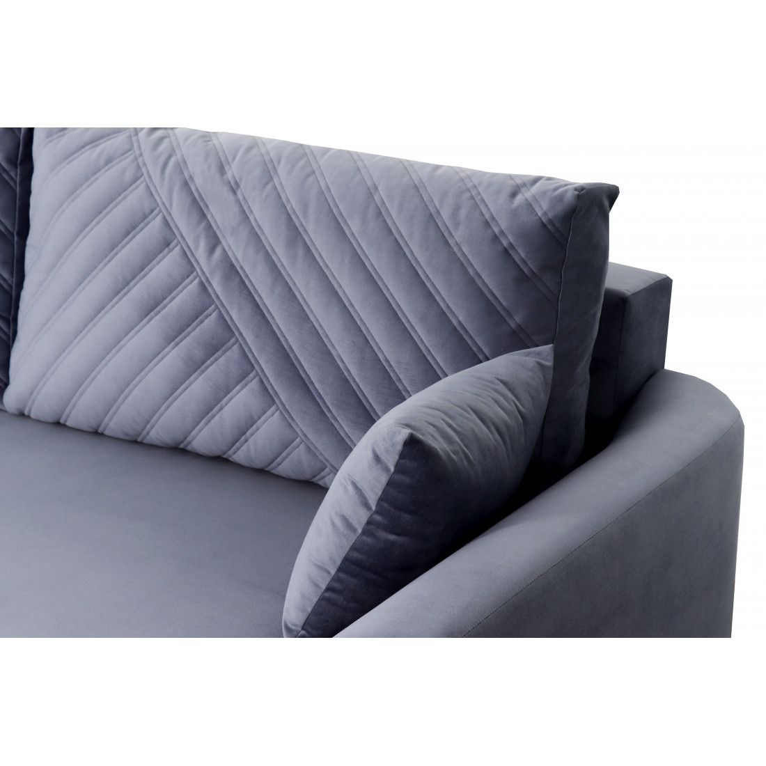 Плавные линии подлокотников позволяют удобно расположиться во время отдыха. Диван стоит на высоких металлических опорах, что позволяет использовать робот-пылесос в процессе уборки. Удобный и долговечный механизм трансформации "Тик-так" обеспечивает легкое раскладывание дивана.