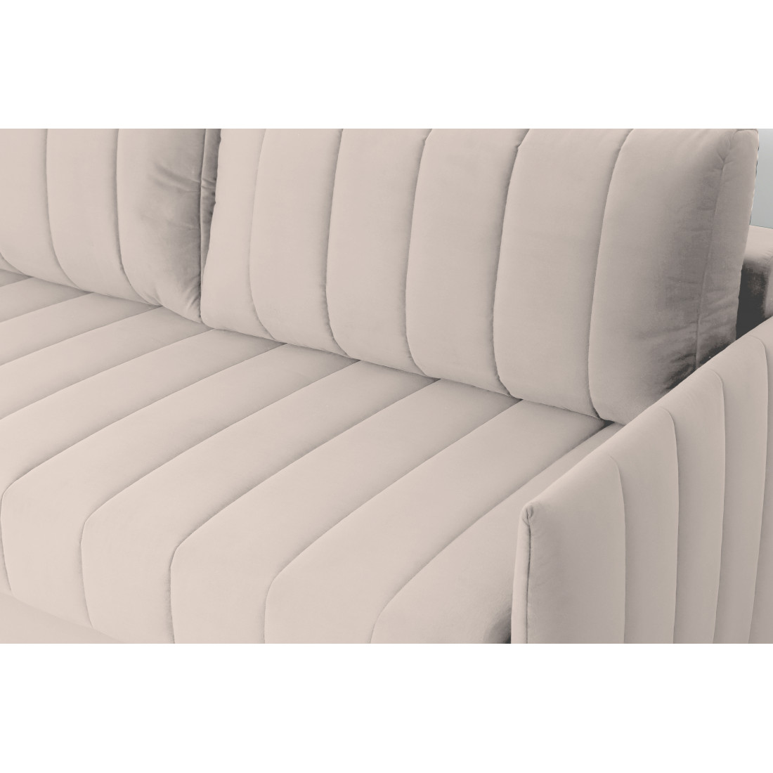 Подушки, сиденье и подлокотники дивана оформлены модной вертикальной стёжкой в современном стиле.