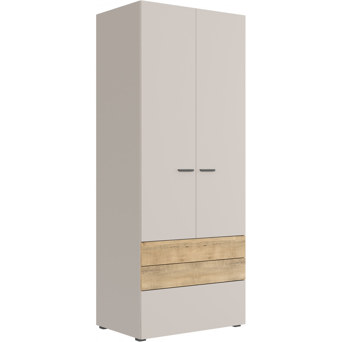 •  Шкаф двухстворчатый, укомплектованный полкой, штангой и 3-мя выдвижными ящиками;