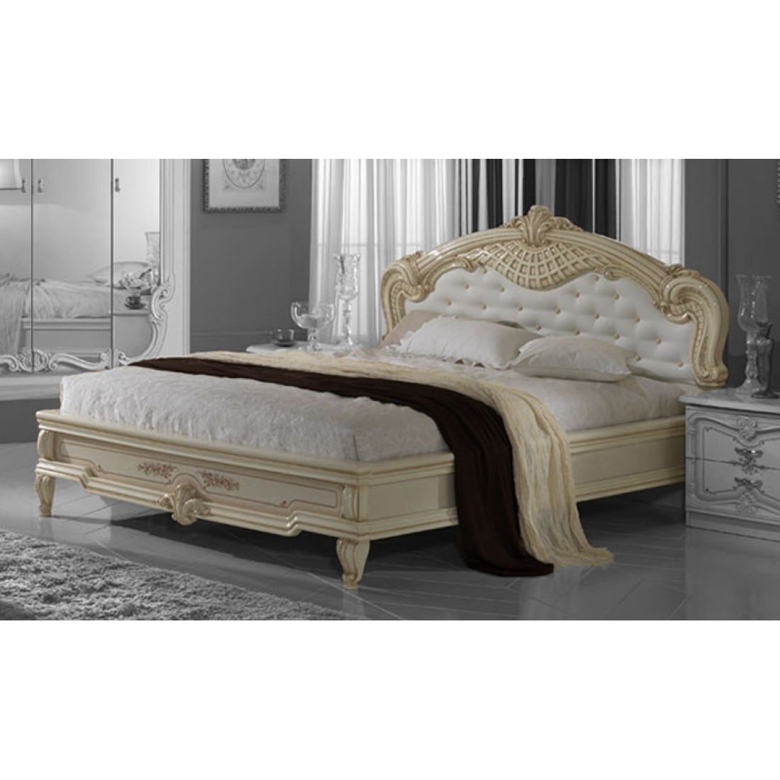 Двуспальная кровать Диана (беж) от Российской фабрики «ДИА мебель» выполнена в бежевом глянцевом цвете. Оригинальный рельеф изголовья кровати с воздушной мягкой вставкой задает определенный шарм всему интерьеру спальни. Большая и просторная кровать поможет вам расслабиться после рабочего дня и окунуться в сладкий сон. Такая коллекция подойдет для изысканных ценителей классического стиля.