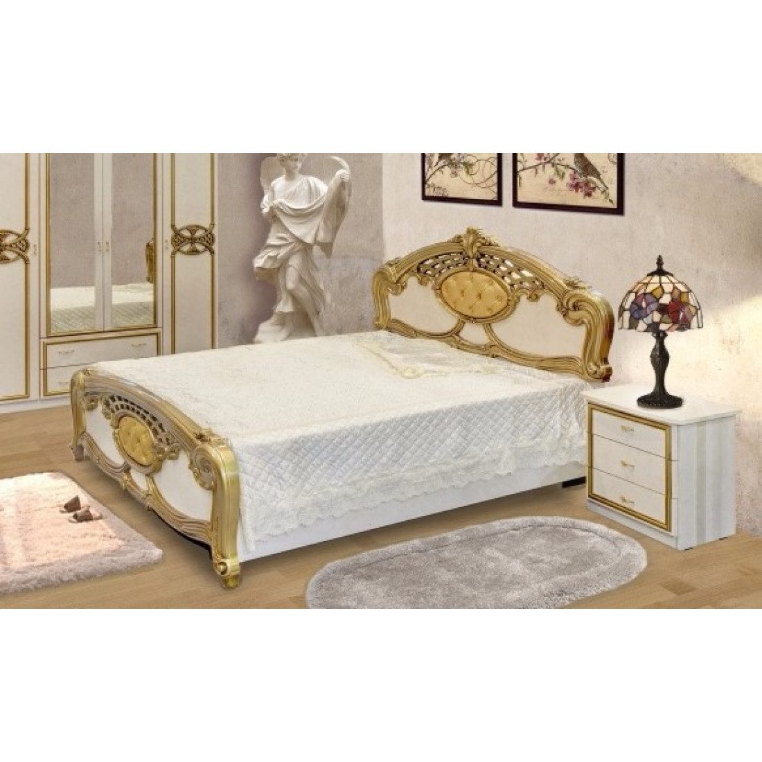 Двуспальная кровать Ольга (беж) от Российской фабрики «ДИА мебель» выполнена в элегантном бежевом цвете с сочетанием золотых вставок и матовым покрытием. Твердое изголовье кровати с объемными резными вставками придаст вашей спальне атмосферу роскоши. Такая кровать поможет Вам почувствовать легкость и расслабиться после трудного дня. Коллекция "Ольга" подойдет для настоящих ценителей классического стиля.