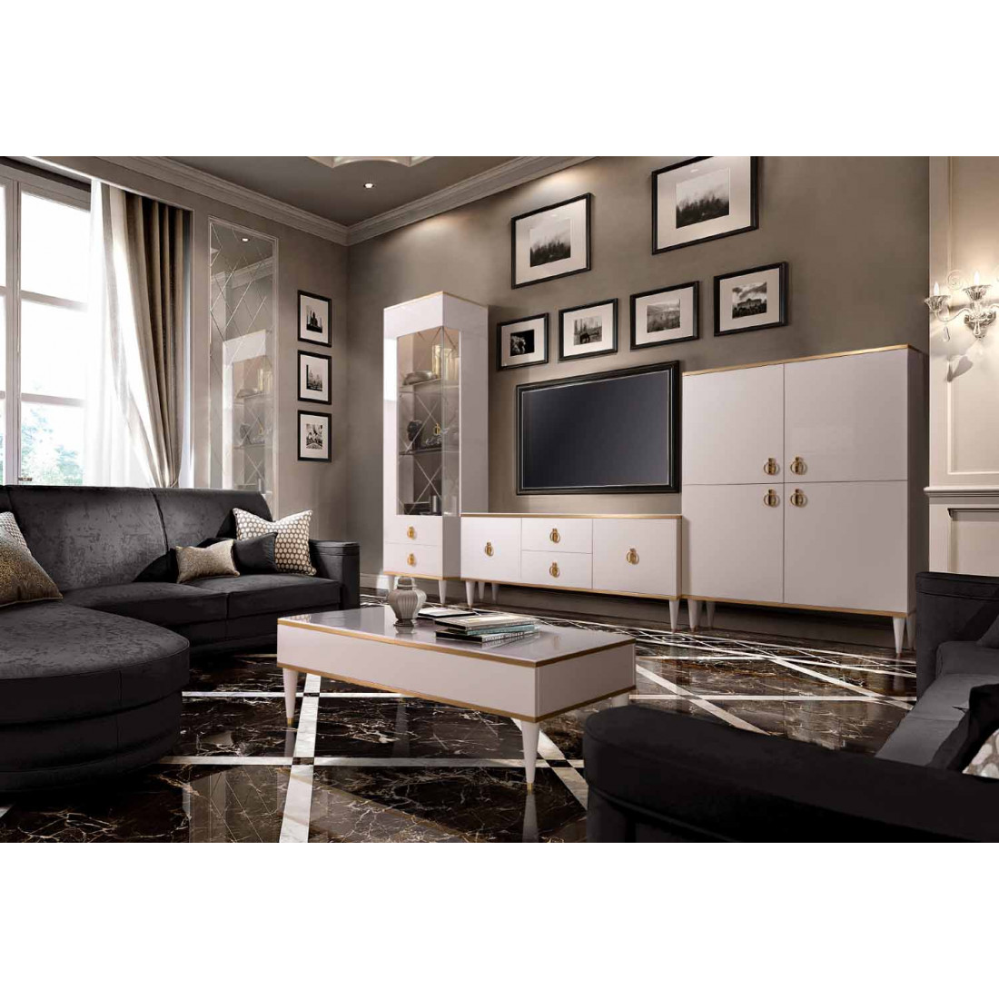 Детали корпуса гостиной Rimini производятся из лакированного МДФ итальянского производства.