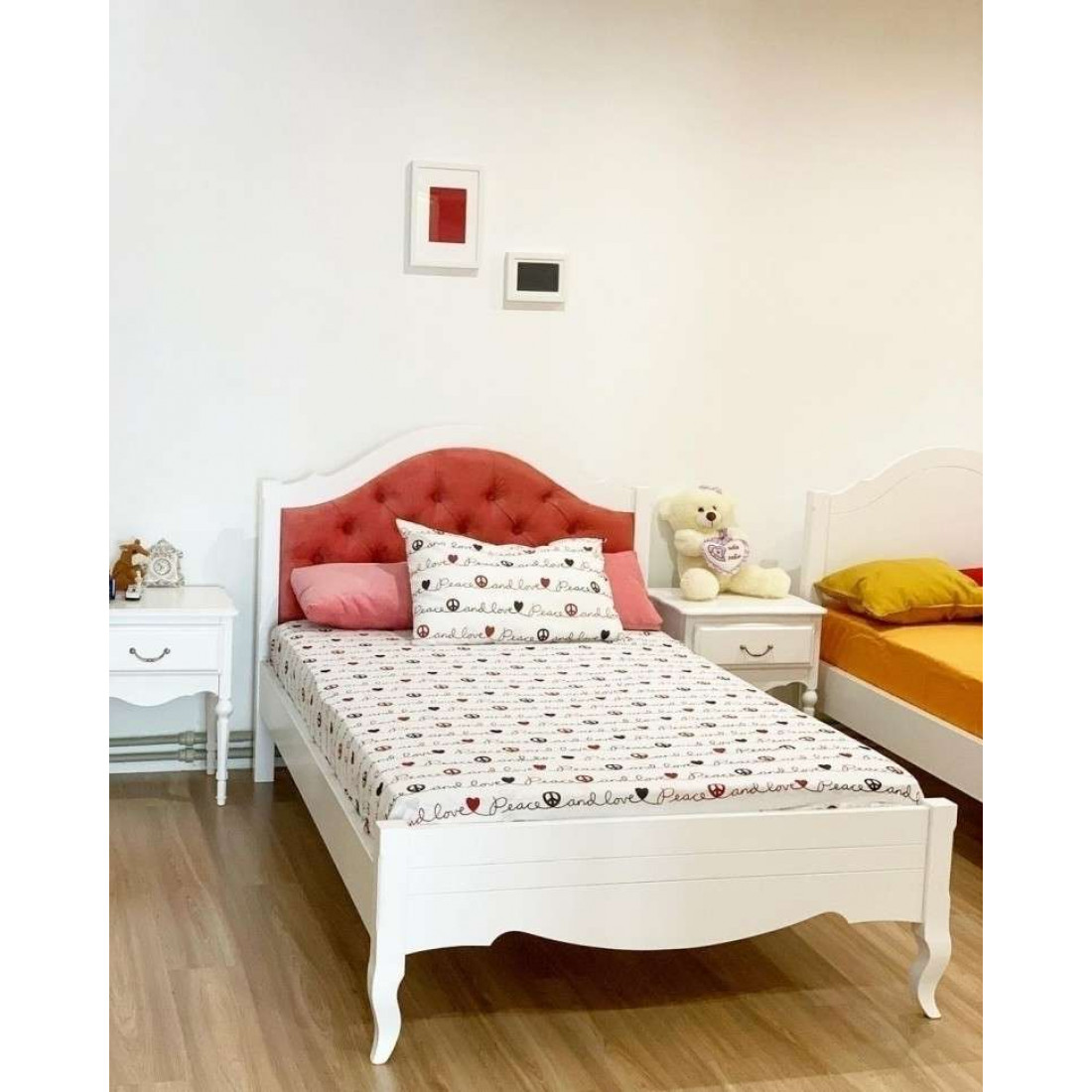 Кровать оснащена ортопедическим основанием для матраса — ламелями.