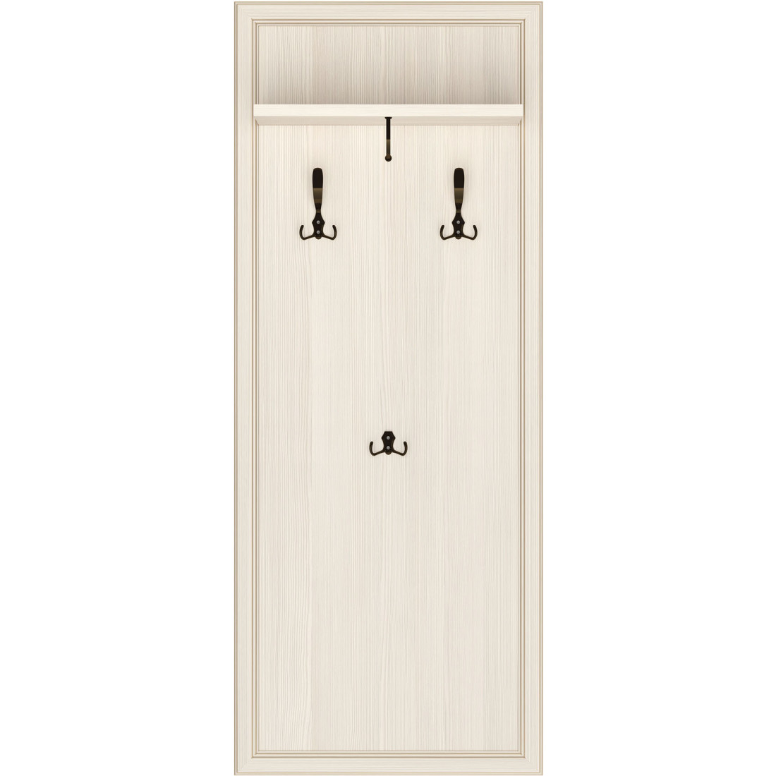 Модульная программа для прихожей «Сиена» производится в текстуре «бодега белый» с эффектом золотого патинирования. Облик «Сиены» дополняют рамочные фасады и карниз в классическом стиле, а также эффектные опоры из МДФ.