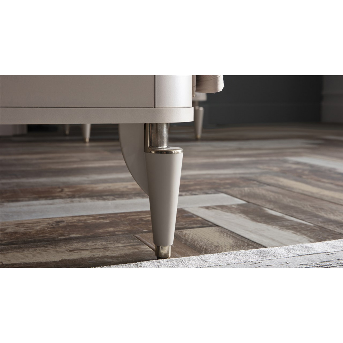 Прикроватная тумба Санвито SANV-27 SANVITO (62х47х61) )прекрасно дополнит ваш спальный гарнитур. Нежный кремовый цвет в сочетании с золотистой фурнитурой ручек и ножек создает атмосферу тепла и уюта в комнате. Комбинированные фасады ящиков с фактурой дерева придают особый шарм тумбочке. Выдвижные ящички позволяют хранить необходимые принадлежности. Скругленные углы с рифленой поверхностью завершают романтический образ прикроватной тумбочки.