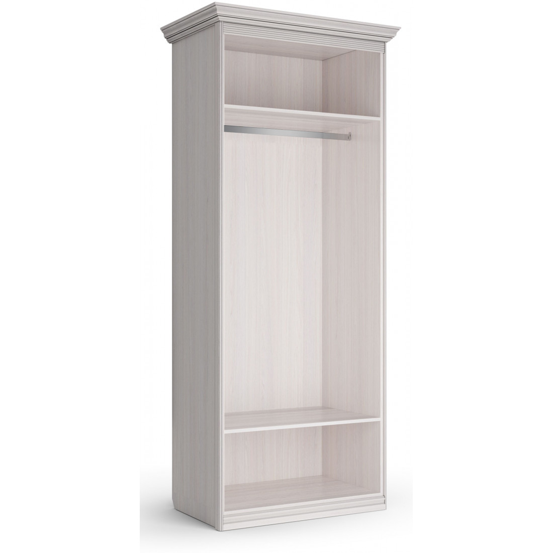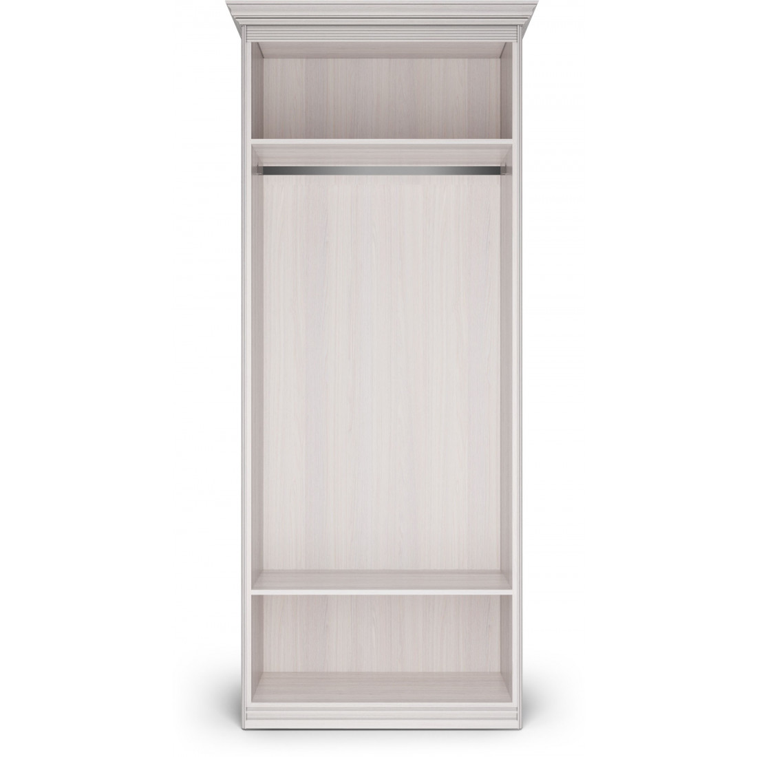 Шкаф 2-х дверный с глухой дверью и зеркальной Неаполь Ясень анкор светлый (патина "серебро")