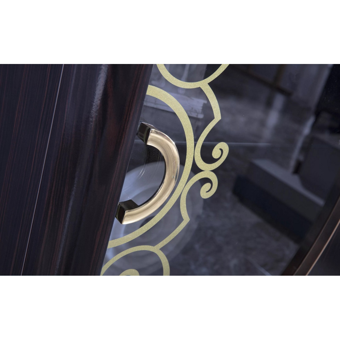 Дизайн шкафа для посуды "Легенда" определенно заслуживает Вашего внимания. Изделие представлено в классическом белом стиле с золотистыми рисунками на стеклянных дверцах и белыми изогнутыми сужающимися к полу ножками. За счет использования высококачественных материалов, удалось добиться долговечности данного изделия.