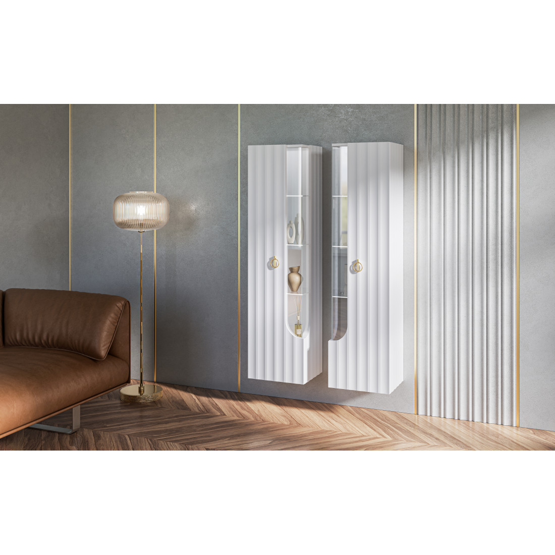 Шкаф-витрина навесной Лоренсо МН-043-02/03 белый