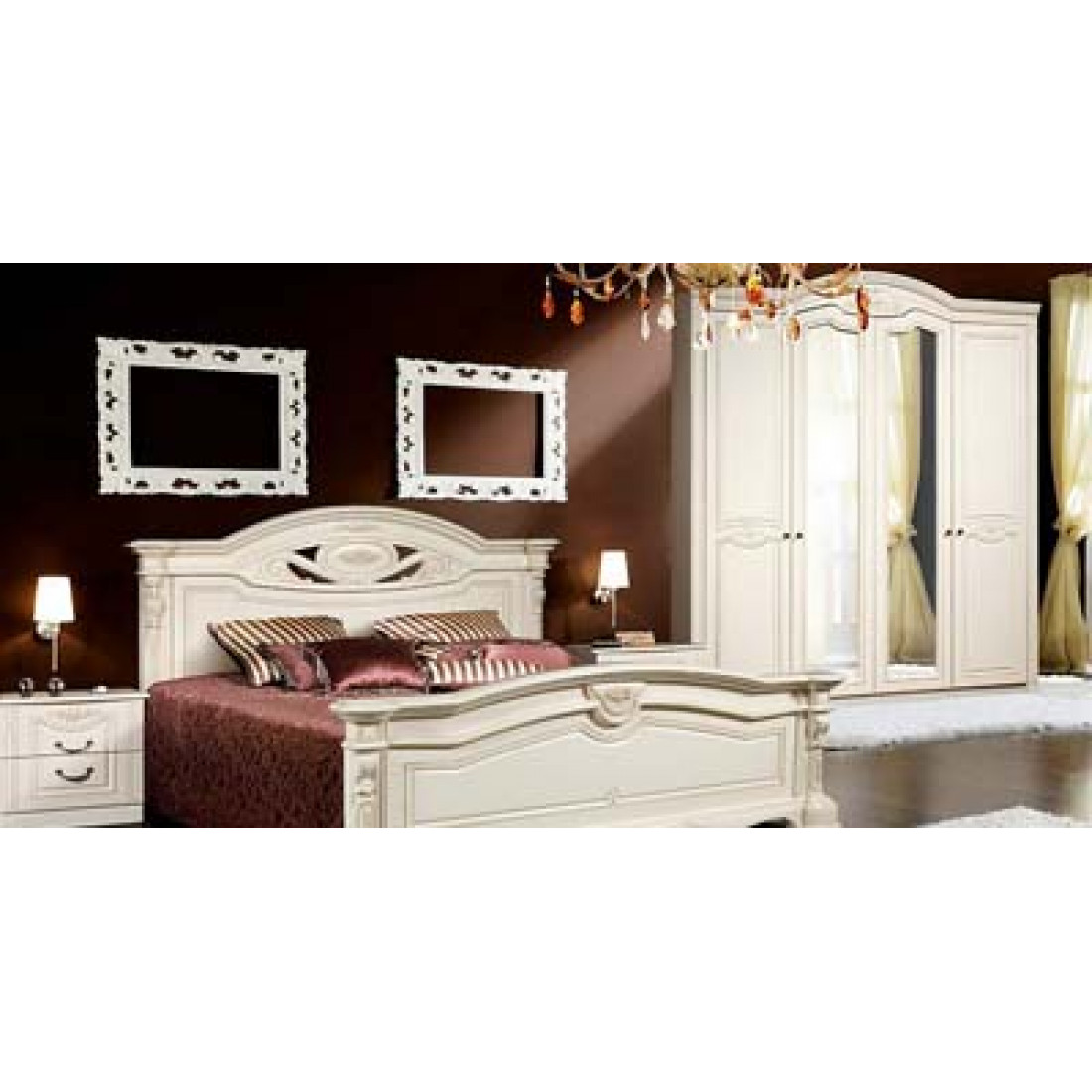 Спальня Сорренто (беж) композиция 2 – изящные формы, высокая резная спинка и благородный бежевый цвет в сочетании с золотом. Каждая деталь продумана до мелочей. Королевская кровать дарит Вам чудную атмосферу старинного уюта, мир в котором царит спокойствие и благополучие. За последние годы появляется все новые и новые стили в оформлении интерьеров, но интерьер оформленный в классическом стиле, по-прежнему остается актуальным. Каждый элемент этой спальни послужит показателем богатства и престижа хозяев дома.