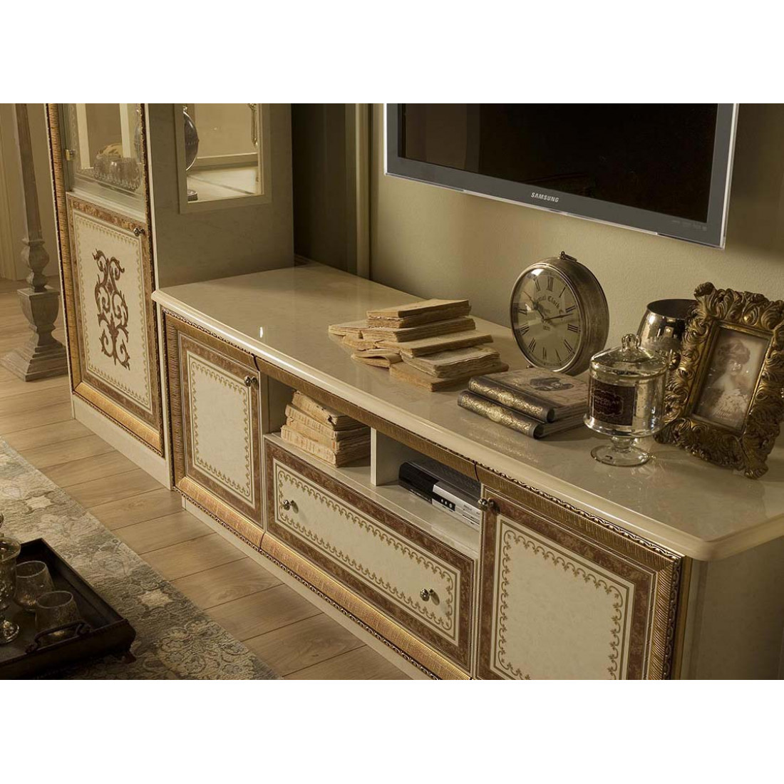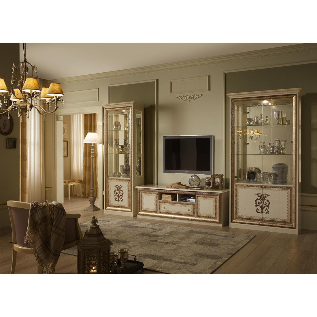 Тумба для ТВ Анита (бежевый глянец) от Российской фабрики «ДИА мебель» Выполнена в цвете бежевый глянец с отделкой золотых фасадов. Классический стиль придают интерьеру неповторимую уникальность и роскошь. Изгибающиеся линии придают легкость и воздушность гостиной либо столовой. Коллекция "Анита" придаст вашему дому экстравагантность и принесет свежие нотки.