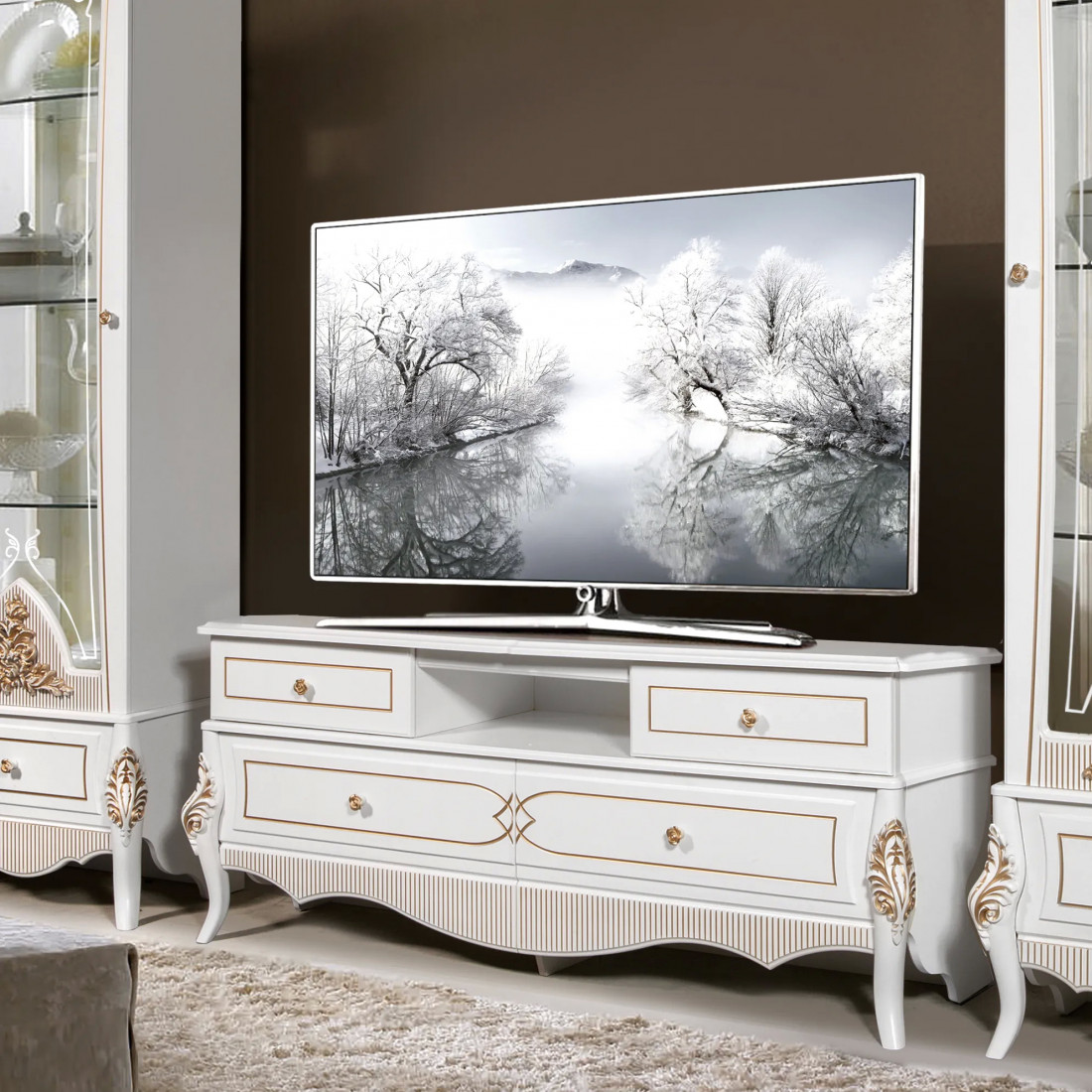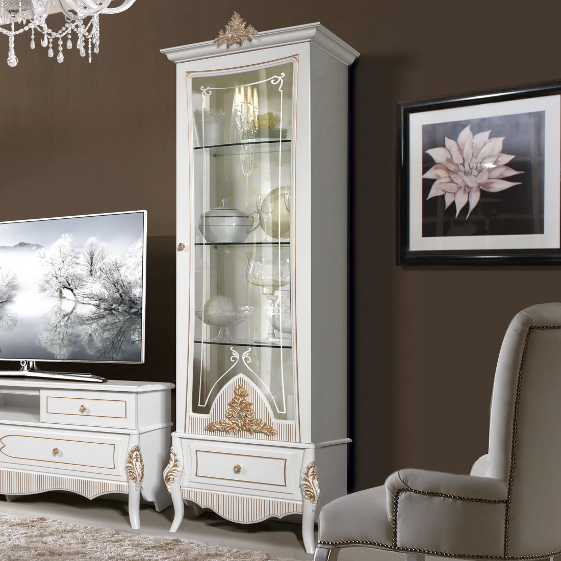 Пятистворчатая витрина в гостиную Стелла (белый золото)