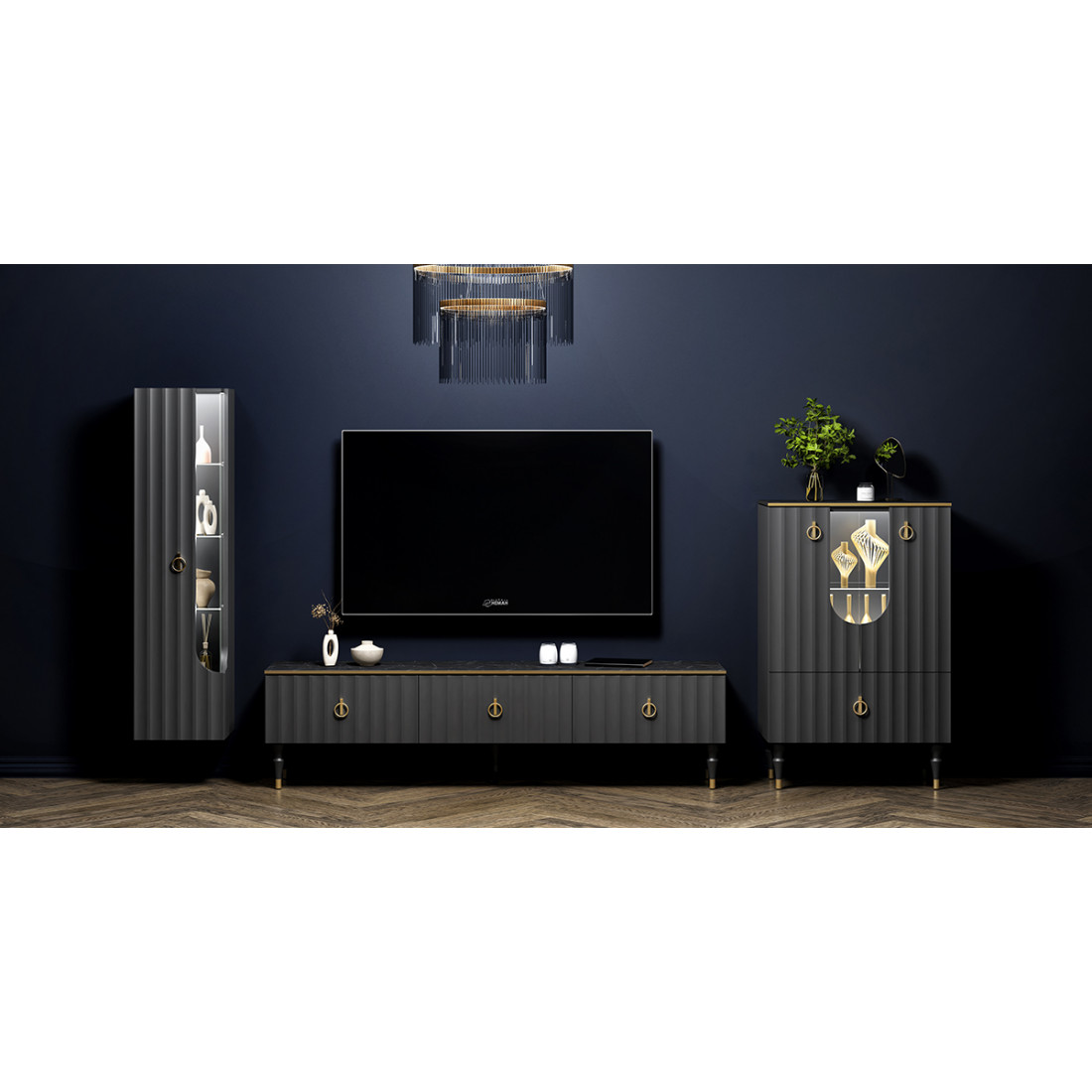 Тумба под ТВ МН-043-06 в гостиную серии Лоренсо от фабрики Мебель-Неман.Петли с доводчиками, рассчитанные на десятки тысяч циклов закрывания, работают плавно и бесшумно.Фасады и боковые панели в коллекции Лоренсо выполнены с инновационным покрытием Serica от итальянских производителей. Это современное, матовое, антибликовое покрытие, приятное на ощупь SOFT-TOUCH. Поверхность защищена от царапин, благодаря специальной обработке. При возникновении микродефекта, его можно легко устранить с помощью термического сглаживания. Технология ANTI-FINGERPRINT гарантирует отсутствие отпечатков пальцев на фасадах.